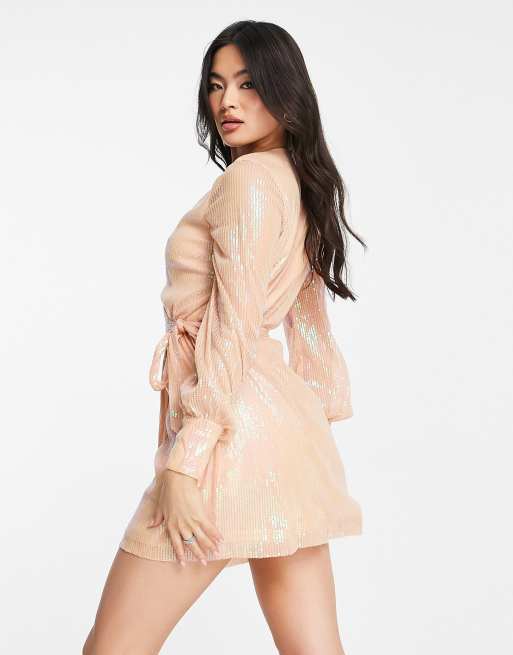 NaaNaa sequin long sleeve wrap mini dress in rose gold Very well made.