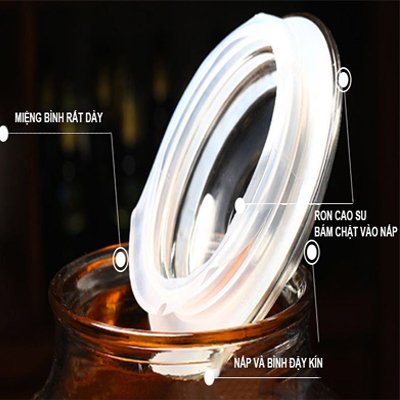 Nắp thủy tinh dày, có ron cao su đậy kín. Miệng bình dày.